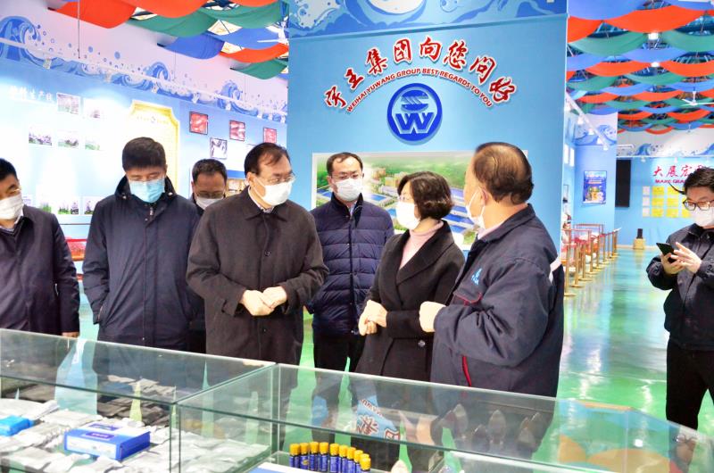 2月2日,威海市委副書記賈瑞靄、市委副秘書長李強、市農(nóng)業(yè)農(nóng)村局局長周華、市農(nóng)業(yè)農(nóng)村局黨組成員,市畜牧業(yè)發(fā)展中心主任張輝來到宇王集團海洋生物科技產(chǎn)業(yè)園,就春節(jié)期間水產(chǎn)品供應(yīng)保障、鄉(xiāng)村振興、農(nóng)村七改、疫情防控等工作進行走訪調(diào)研。苗強董事長攜公司領(lǐng)導接待并陪同調(diào)研。