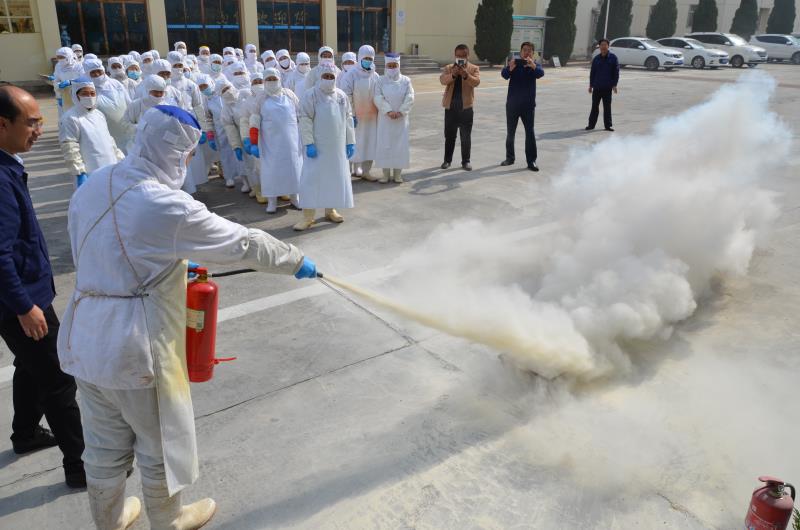 公司相關領導現場講解火災的基本知識,并從防火、滅火、自救逃生等方面,深入淺出的解讀了火災發生的原因,傳授了如何報火警、如何撲救初起火災、如何火場逃生自救等常識;隨后宇祥二廠職工在園區廣場進行了滅火器的實際操作演練。
