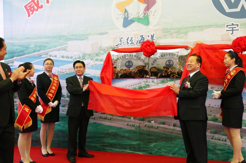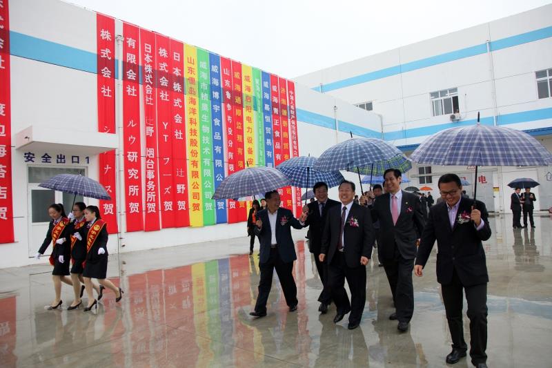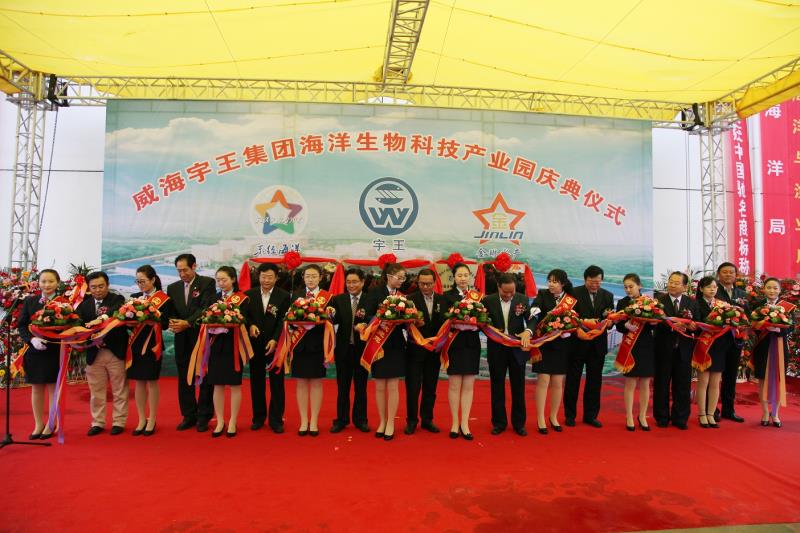 11月6日上午,宇王集團舉行海洋生物科技產業園項目慶典。中國水產流通與加工協會常務副會長崔和、山東省漁業協會名譽會長候英民、威海經濟技術開發區工委副書記馬端興、威海市海洋與漁業局局長王煥孟、威海市科技局副局長王杰等領導出席慶典儀式;另有各大科研院所教授、日韓商客戶代表、金融單位、新聞媒體及30余家合作單位領導等參加慶典儀式;同時有60余家日韓及國內合作單位發來賀電、賀信。