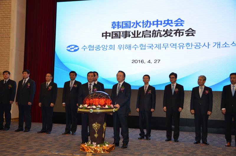 為加快落實中韓自貿(mào)協(xié)定簽署后的推進工作,4月27日韓國水協(xié)中央會.中國事業(yè)起航發(fā)布會在威海東山賓館舉行。韓國水協(xié)中央會會長金任權(quán)、威海市人民政府副市長葉立耘等中韓領(lǐng)導出席起航發(fā)布會,宇王集團公司董事長苗強應(yīng)邀出席。