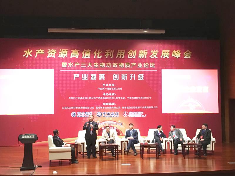 由中國水產流通與加工協會主辦,協會水產資源高值化利用工作委員會、中國保健協會原材料分會承辦的第一屆“水產資源高值化利用創新發展峰會” 暨“水產三大生物功效物質產業論壇”于2016年11月21日至22 日在北京國家會議中心召開。
