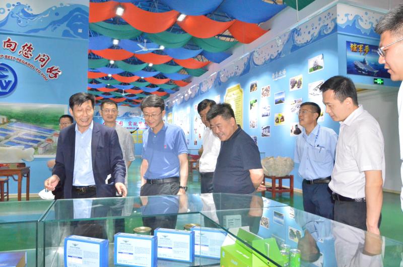 考察組一行先后參觀公司海洋生物館、海洋生物膠原蛋白加工車間、海藻多糖加工車間,宇王集團(tuán)常務(wù)副總李建忠詳細(xì)介紹了公司的發(fā)展歷程、人才引進(jìn)成果、產(chǎn)業(yè)結(jié)構(gòu)及各項(xiàng)科技研發(fā)成果。王曉副廳長及其他領(lǐng)導(dǎo)紛紛對宇王集團(tuán)的發(fā)展表示肯定,并對公司的藍(lán)色海洋科技發(fā)展戰(zhàn)略和人才儲備計劃給予高度關(guān)注和重視。